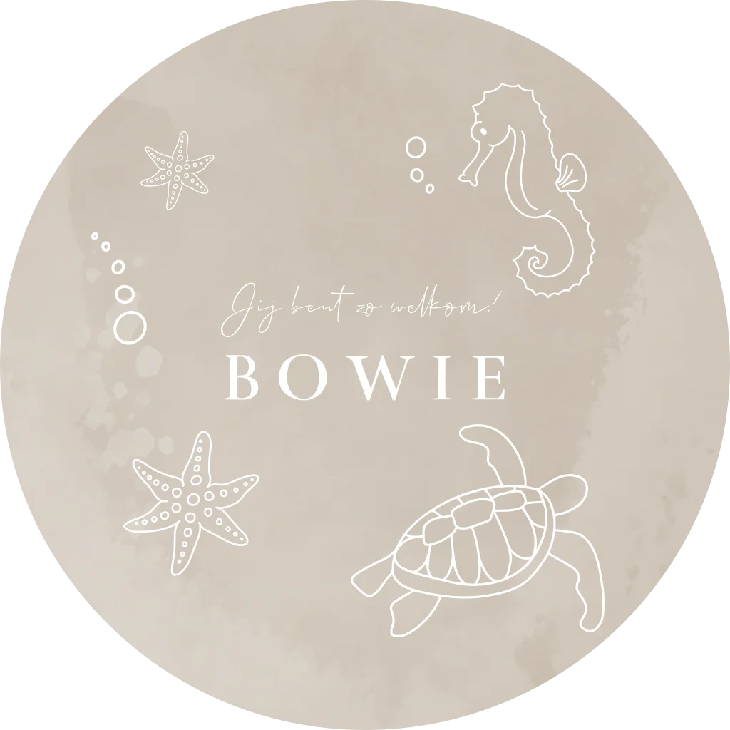 Dit is een originele manier om aan te kondigen dat je kleintje is geboren. De raamsticker heeft een beige velvet-look achtergrond met de lijntekeningen van zeedieren. De raamsticker kan helemaal naar wens aangepast worden in onze online editor.