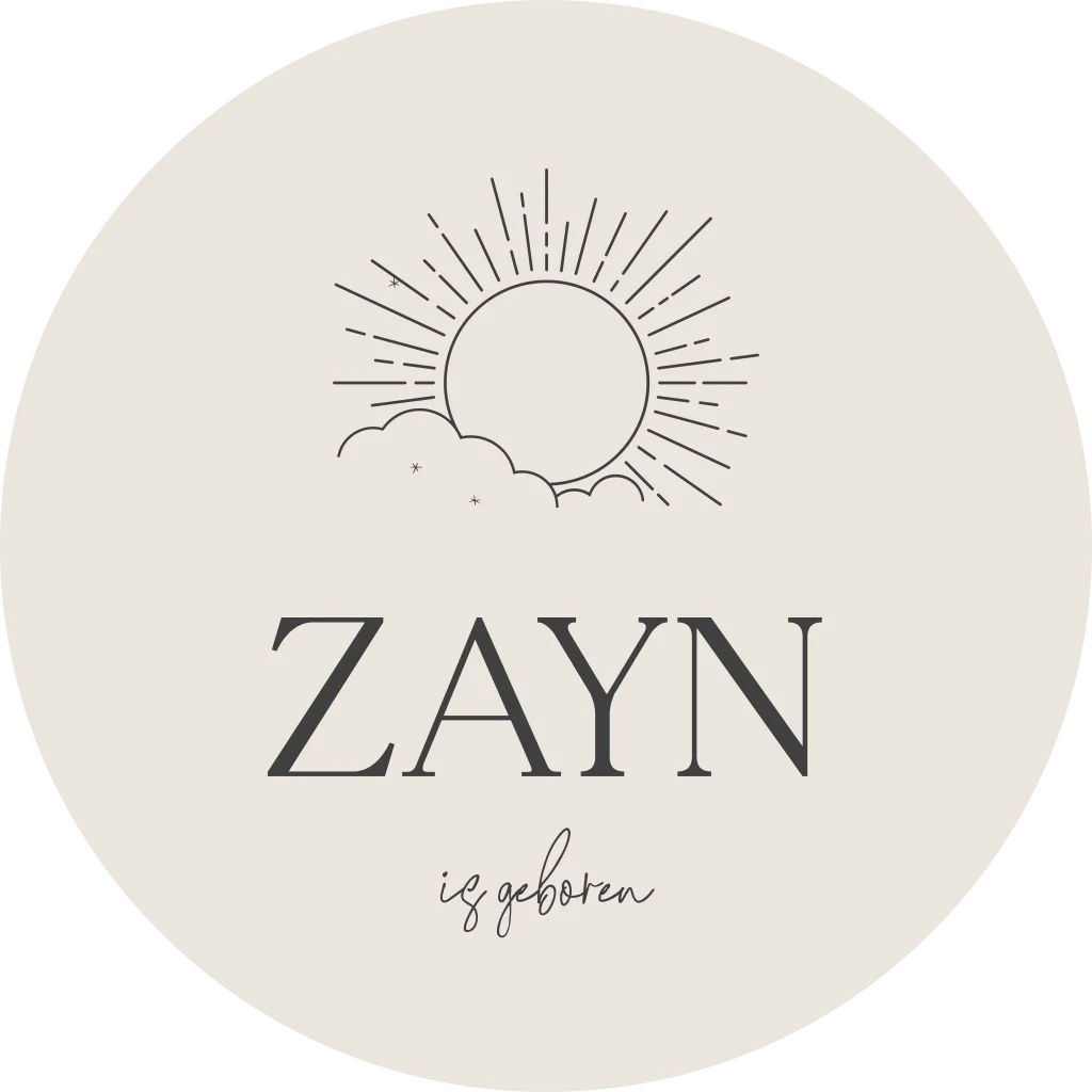 Kondig de geboorte van jullie kindje aan met deze ronde raamsticker, met een grijze achtergrond en een illustratie van een zon. De sticker is naar wens aan te passen in onze online opmaaktool. Tip: zonder geboortedatum kun je de sticker al voor de geboorte in huis halen!