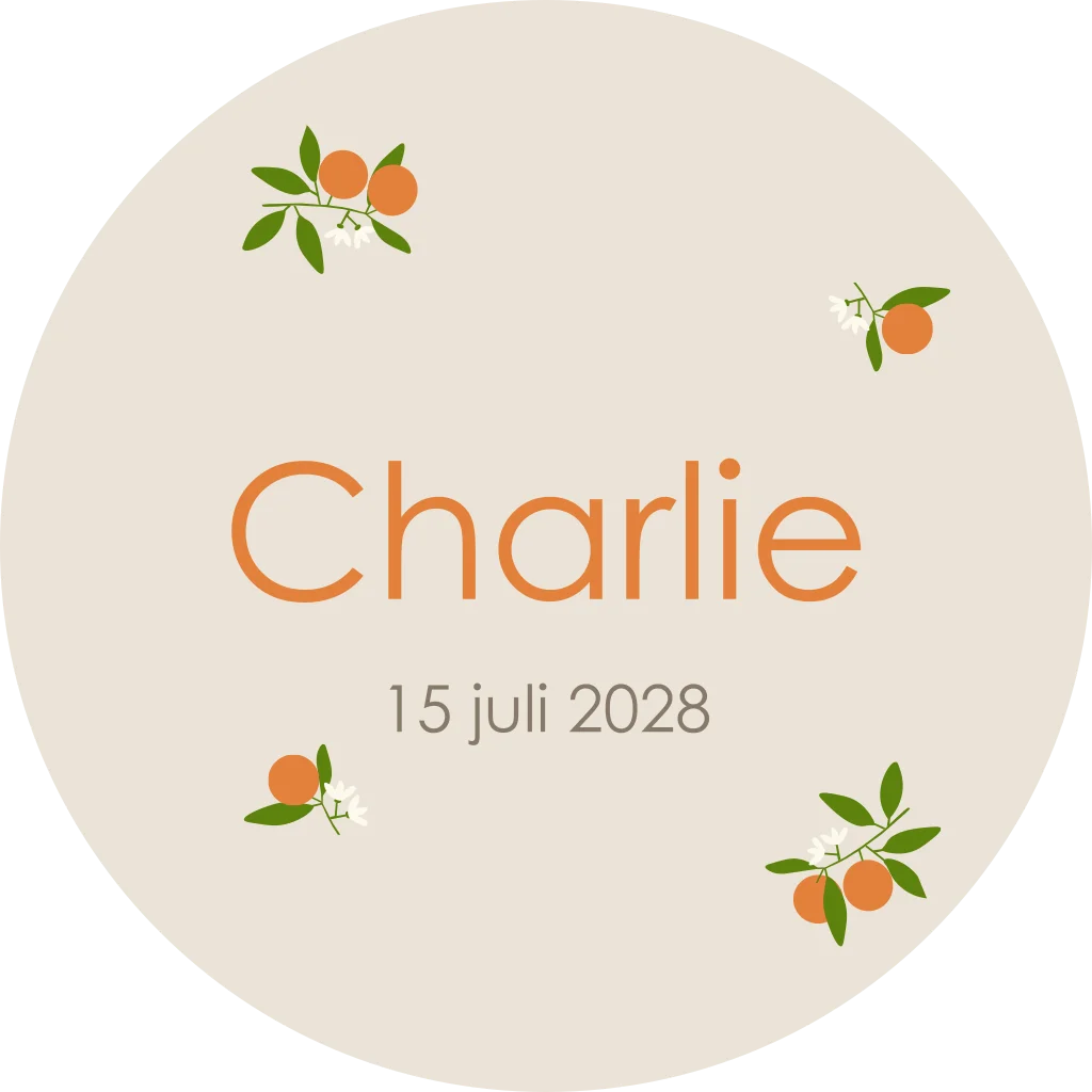 Dit is een speelse raamsticker. De sticker heeft een neutrale achtergrond met de illustraties van sinaasappels. De raamsticker kan helemaal naar wens aangepast worden in onze online editor.