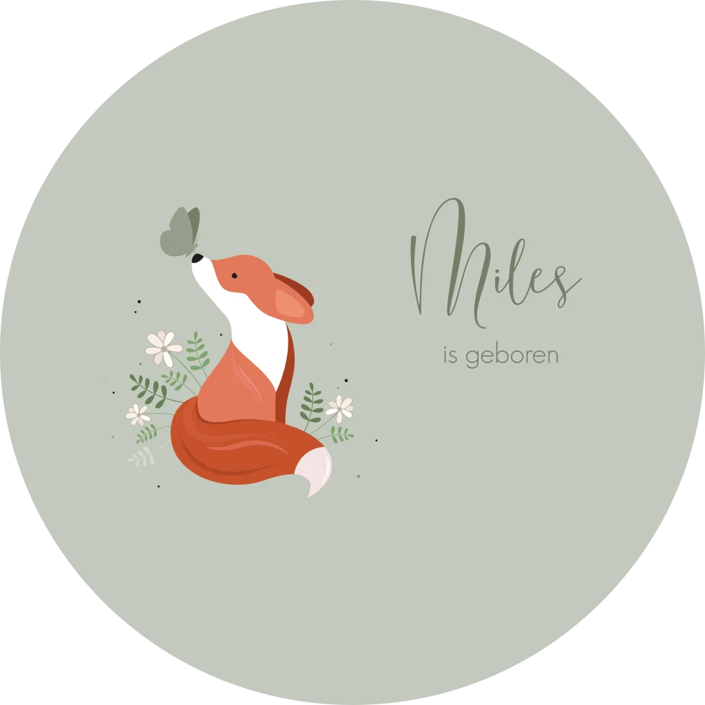Kondig de geboorte van jullie kindje aan met deze lieve raamsticker. De sticker heeft een groene achtergrond waarop de illustratie van een vosje met een vlinder staat. Het design kan helemaal naar wens aangepast worden in onze online editor. Tip: zonder geboortedatum kun je de sticker al voor de geboorte in huis halen!