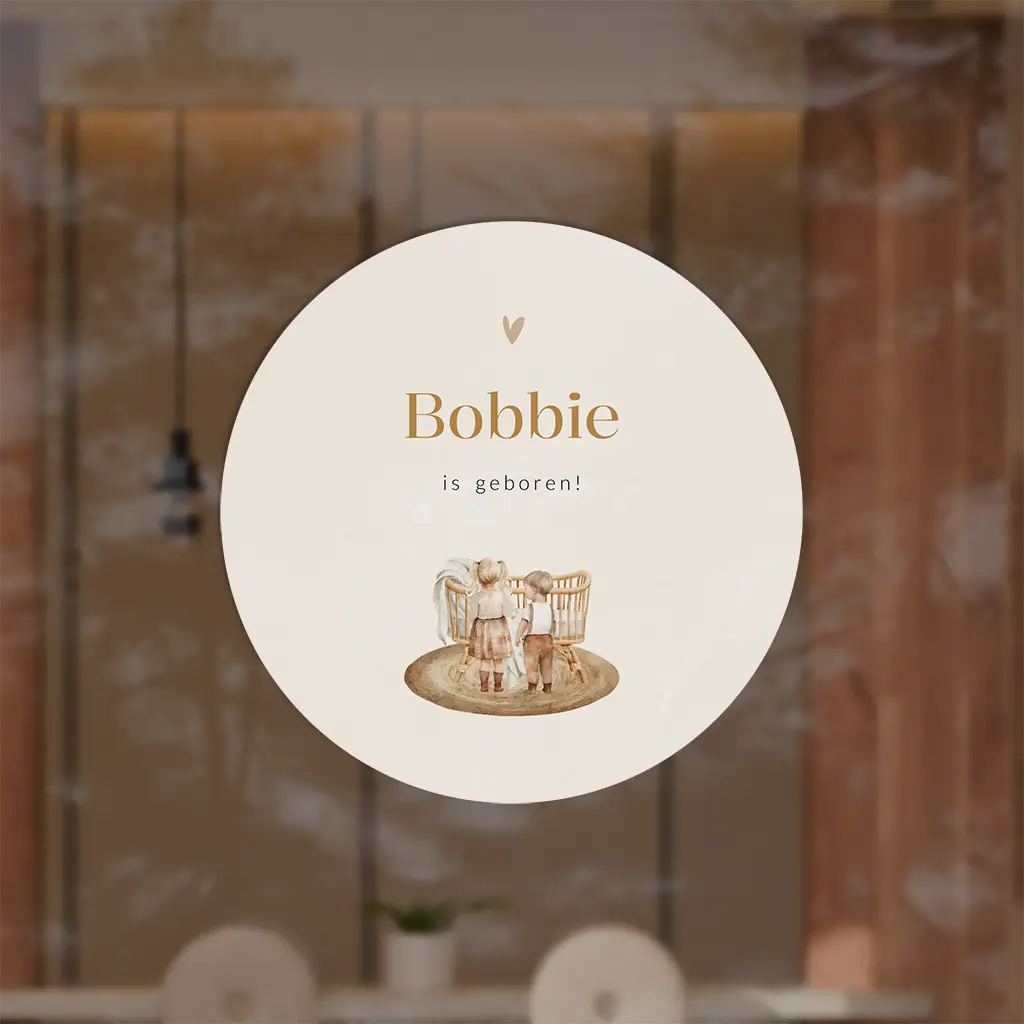 Raamsticker met illustratie wiegje met grote broer en zus