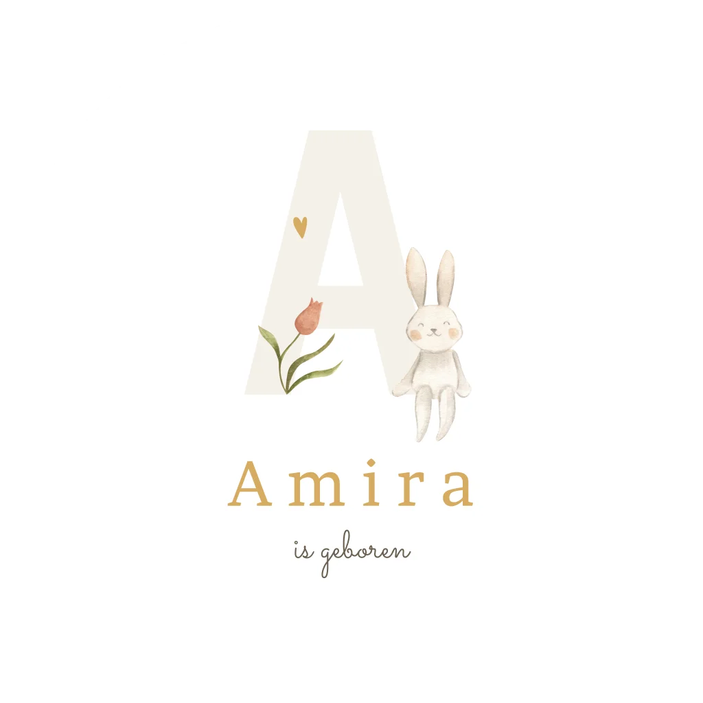 Dit is een originele manier om aan te kondigen dat je kleintje is geboren. Op deze raamsticker zie je een initiaal met bloem en konijn. De sticker is naar wens aan te passen in onze online editor.