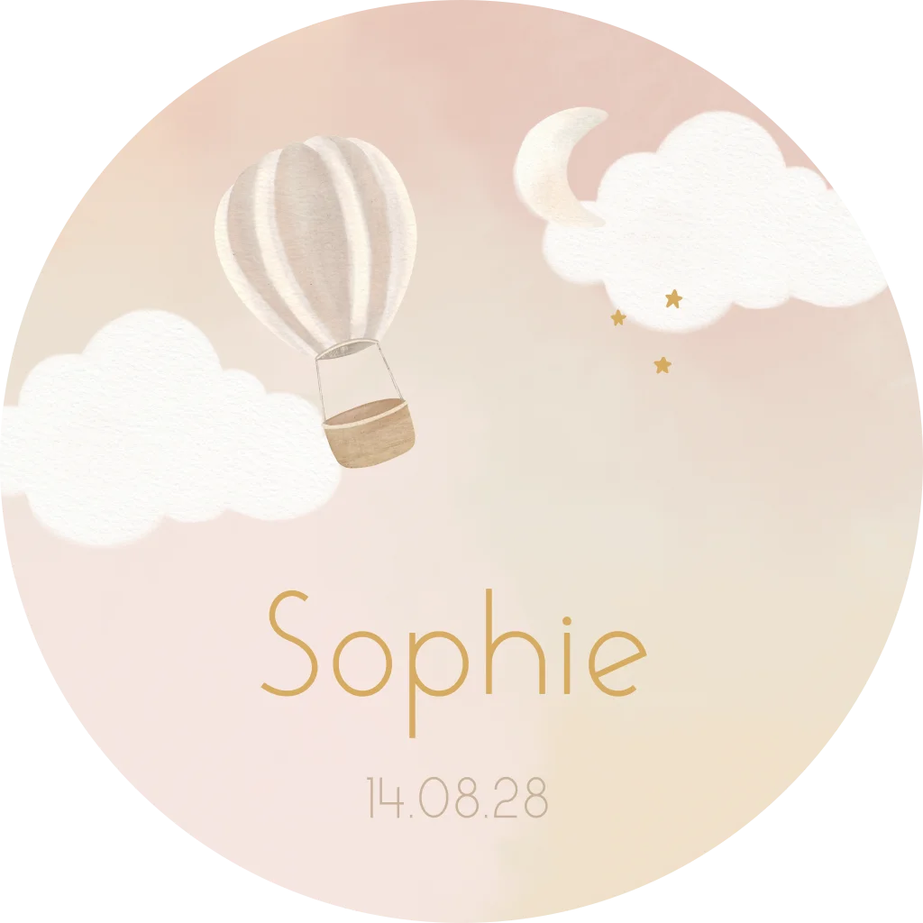 Een lieve ronde raamsticker voor jouw meisje. De sticker heeft een roze/peachkleurige achtergrond met daarop een lieve luchtballon en wolkjes. Pas de raamsticker naar wens aan in onze online editor.
