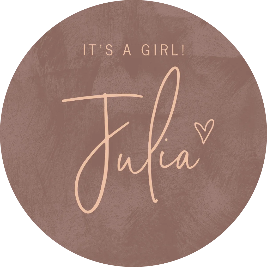 Met deze hippe raamsticker ziet iedereen meteen dat jullie dochter is geboren! De naam staat in sierlijke lichtroze letters op een fluweel-look achtergrond, deze pas je gemakkelijk aan in de editor.
