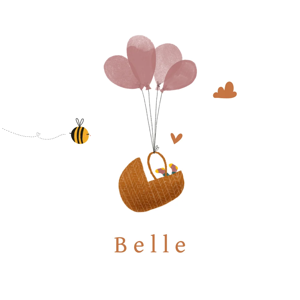 Een lieve ronde raamsticker om de geboorte van jouw kindje aan te kondigen. De sticker heeft een witte achtergrond met daarop schattige illustraties van een mandje aan ballonnen. Pas het ontwerp naar wens aan in onze online editor.