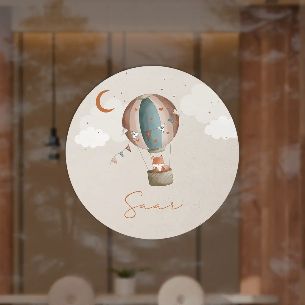 Raamsticker rond beige met luchtballon en vosje