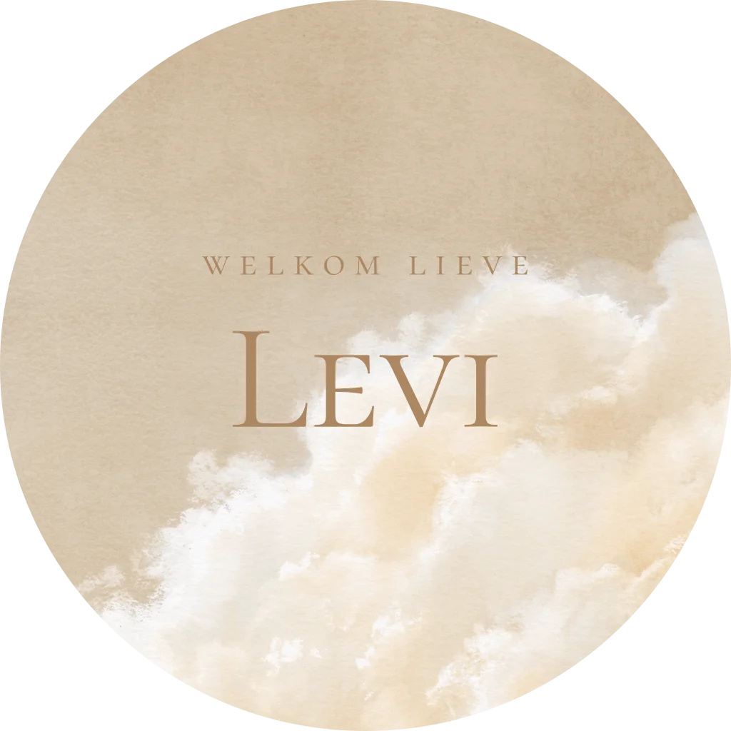 Kondig de geboorte van jullie kindje aan met een eigen ontworpen raamsticker! Deze ronde raamsticker heeft een illustratie van wolken in een beige lucht. Kies uit de verschillende sierlijke letters. Zo maak je zelf de perfecte raamsticker.