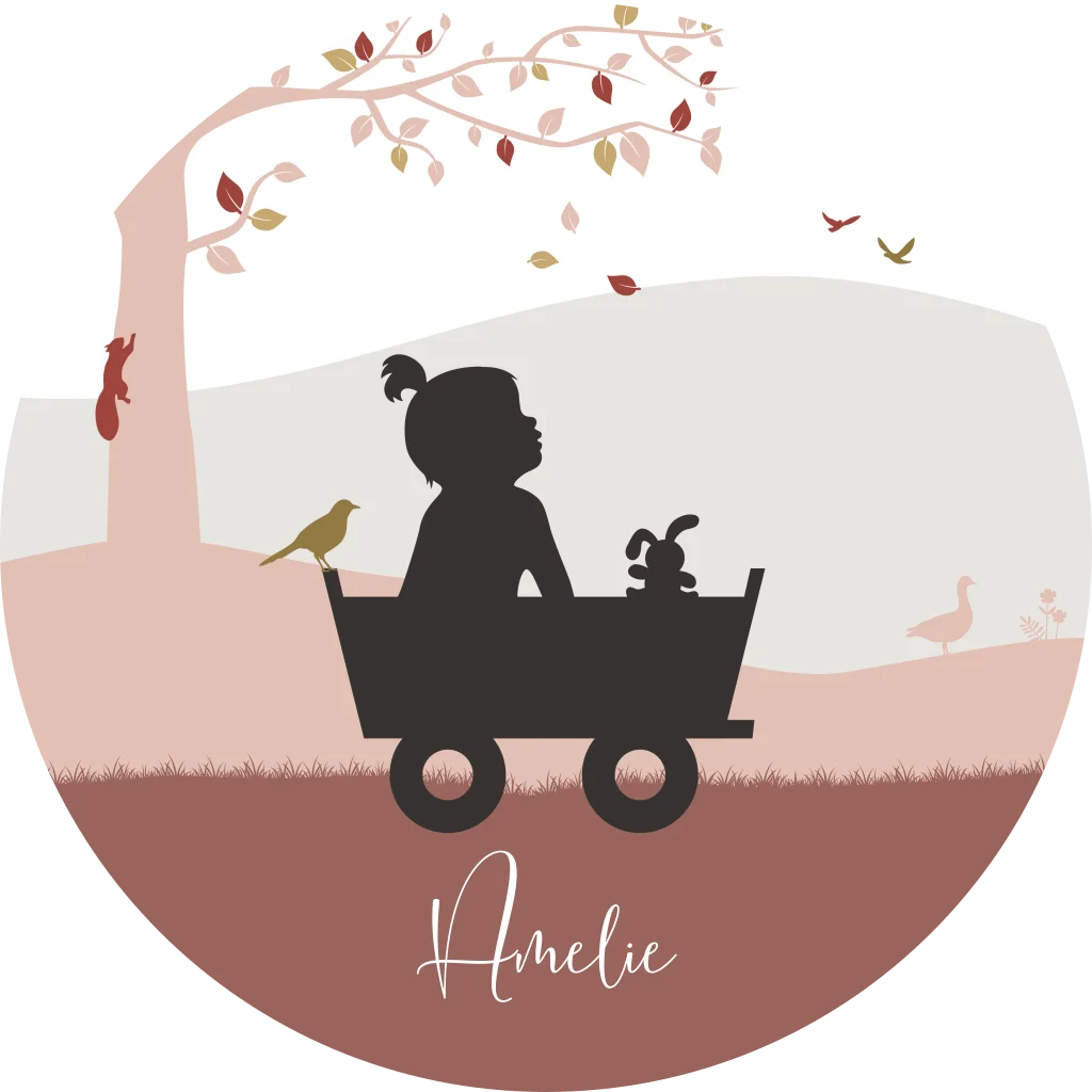 Een bijpassende raamsticker bij jouw geboortekaartje. Deze sticker heeft een lieve illustratie van een meisje in een bolderkar onder een boom. Deze raamsticker is naar wens aan te passen in onze online editor.