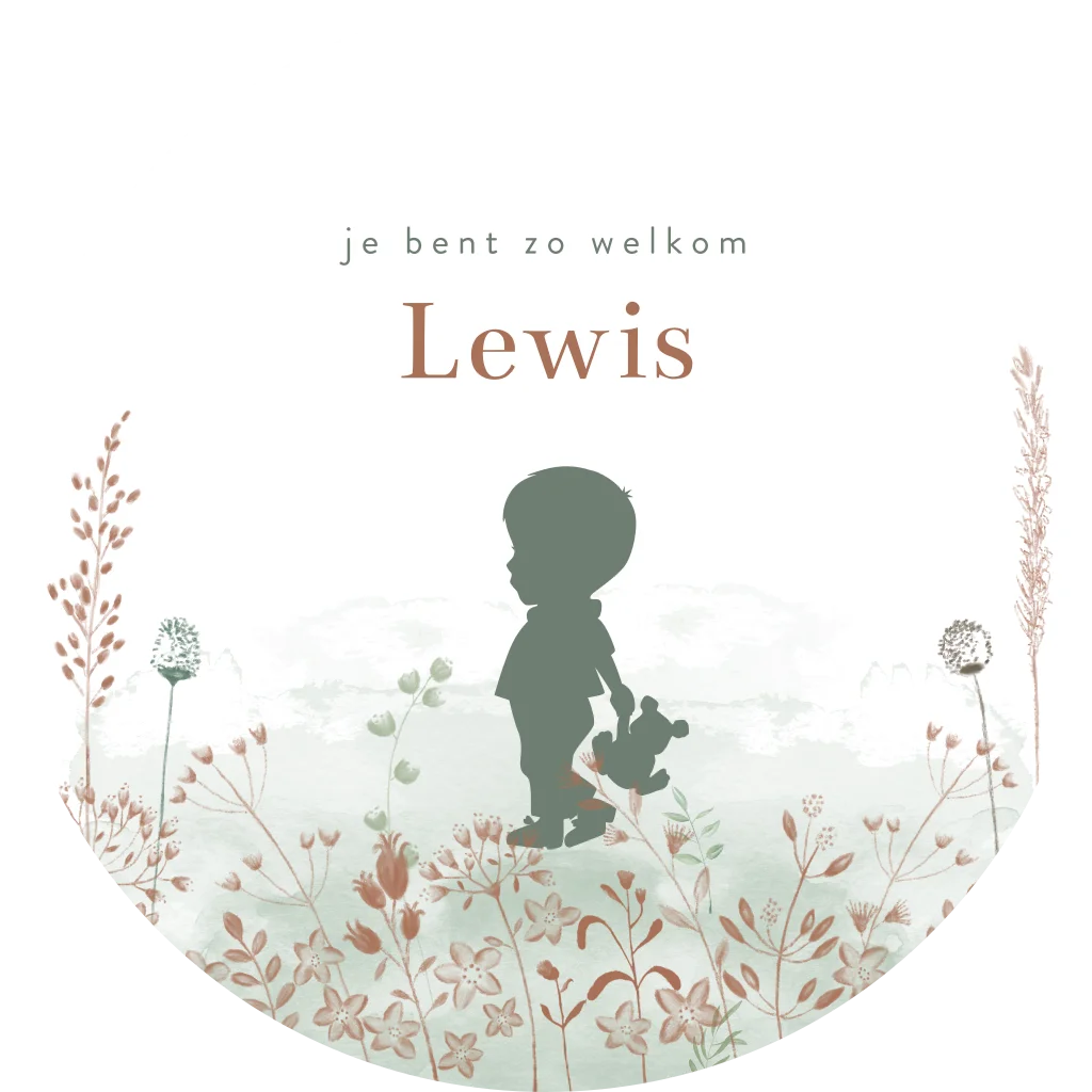 Een lieve ronde raamsticker voor jouw zoontje. De sticker heeft een groene watercolour achtergrond met daarop verschillende veldbloemen. In het midden zie je een silhouetje van jouw kindje.