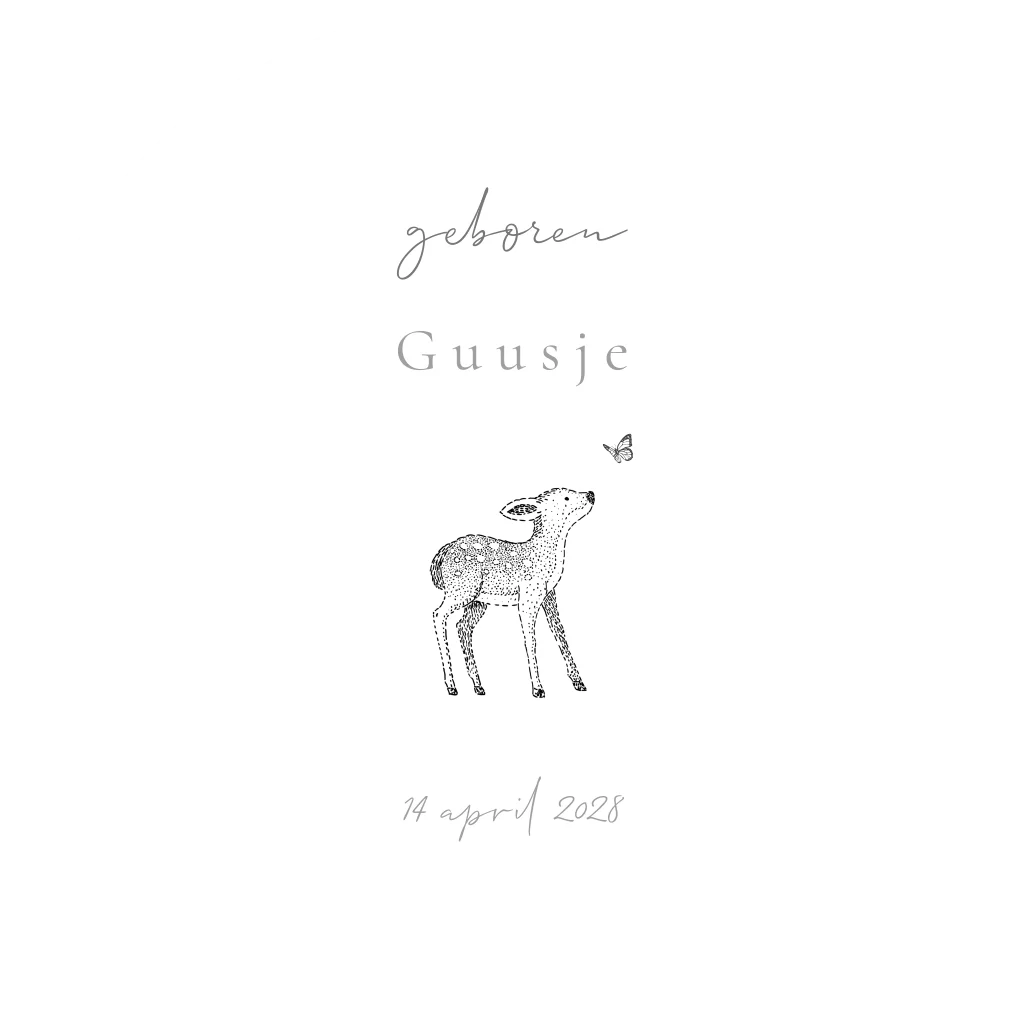 Een schattige ronde raamsticker om de geboorte van jouw kindje aan te kondigen. Deze sticker heeft een witte basis met daarop een tekening van een lief hertje en vlinder.