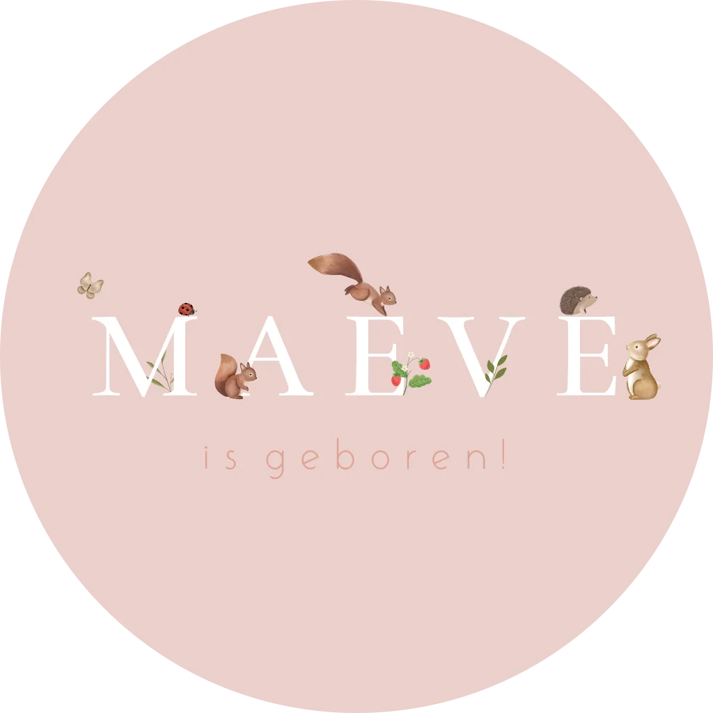 Kondig de geboorte van jullie kindje aan met deze hippe ronde raamsticker, met een roze achtergrond en bosdieren rondom de naam. De sticker is naar wens aan te passen in onze online opmaaktool. Tip: zonder geboortedatum kun je de sticker al voor de geboorte in huis halen! De raamsticker is op aanvraag ook beschikbaar in formaat 40 cm, 80 cm en 100 cm.
