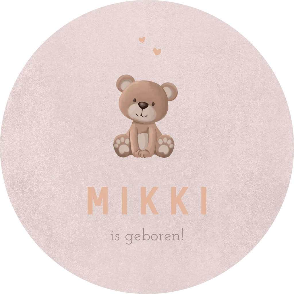 Een lieve ronde raamsticker om de geboorte van jullie kindje aan te kondigen. De sticker heeft een roze achtergrond met teddybeer en hartjes.