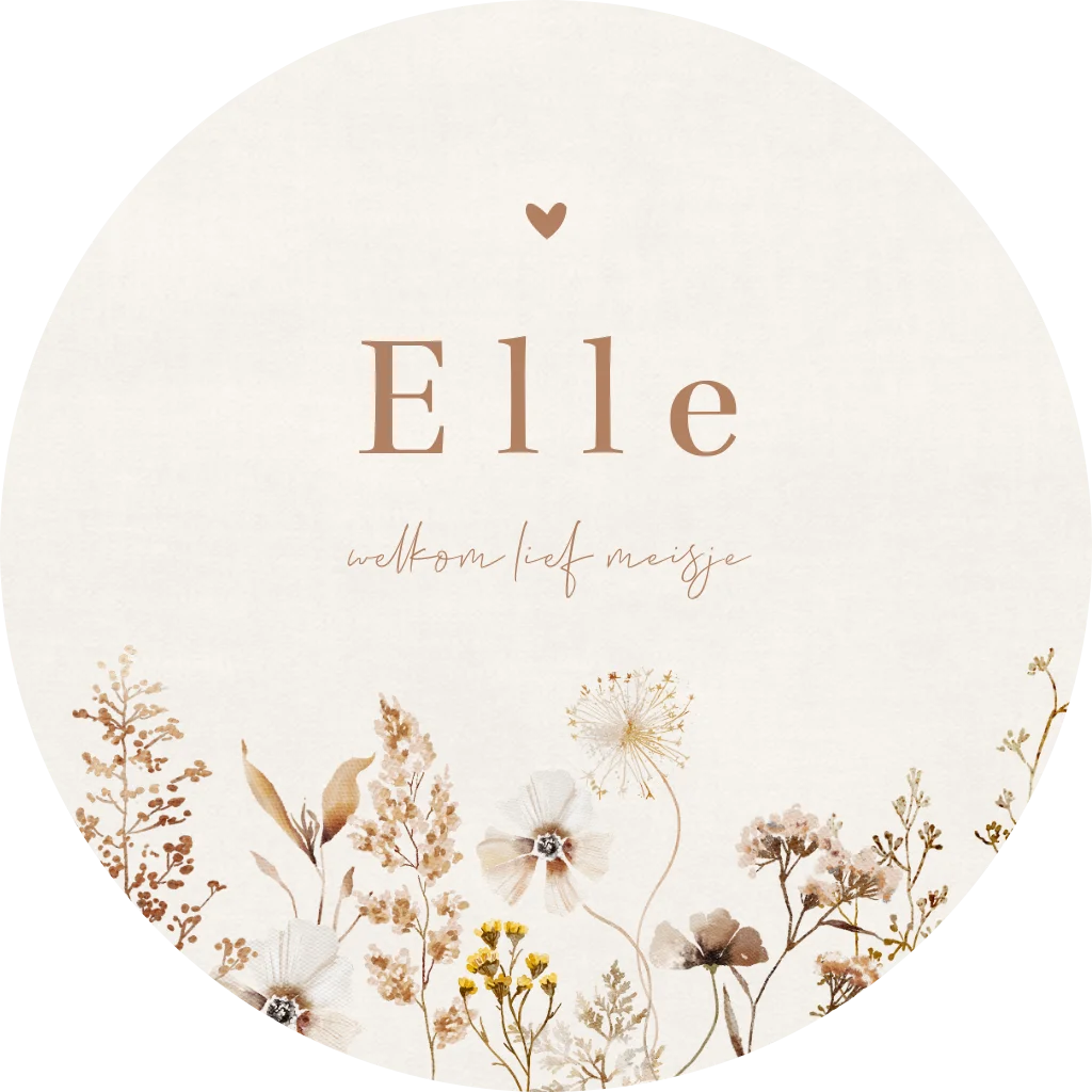Een prachtige ronde raamsticker met verschillende veldbloemen in aardetinten. De vlag is volledig naar wens aan te passen in onze online editor.