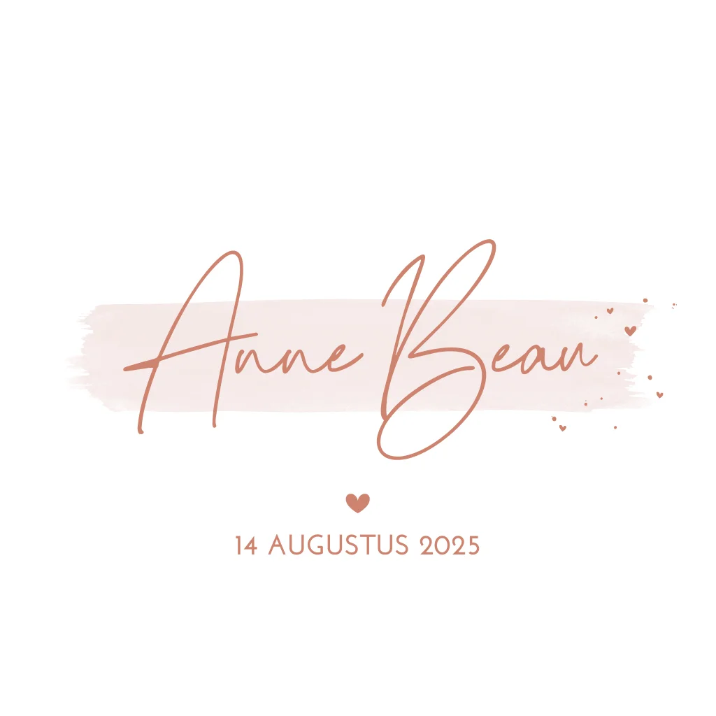 Kondig de geboorte van jullie kindje aan met deze ronde raamsticker met een lieve uitstraling. Op dit ontwerp zie je een watercolour streep, hartjes en de naam geschreven in een sierlijk lettertype.