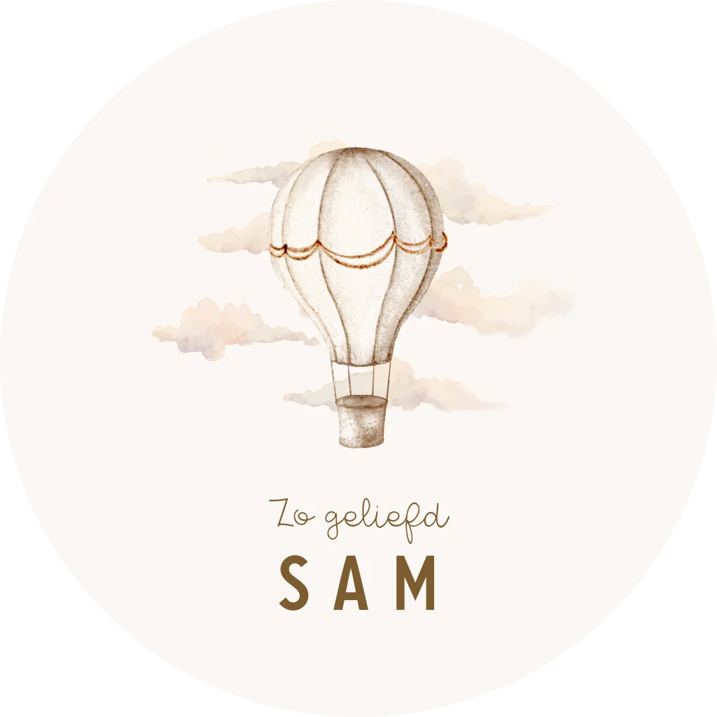 Kondig de geboorte van jouw kindje aan door middel van een raamsticker. De sticker heeft een lichte achtergrond met daarop wolkjes en een luchtballon. Pas het ontwerp naar wens aan.