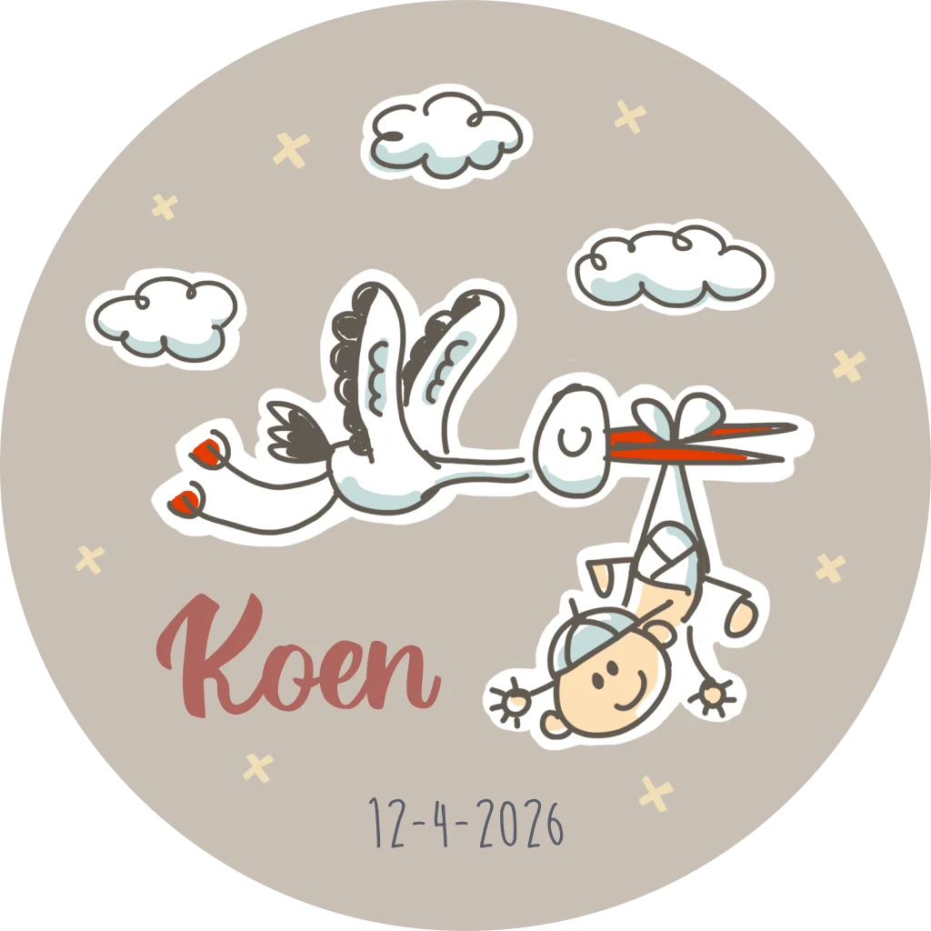 Kondig de geboorte van jullie kindje aan met een eigen ontworpen raamsticker! Deze ronde raamsticker heeft een vrolijke illustratie van een ooievaar vliegend tussen de wolkjes. Laat je creativiteit de vrije loop en kies in onze online editor uit diverse afbeeldingen en achtergronden. Zo maak je zelf de perfecte raamsticker.
