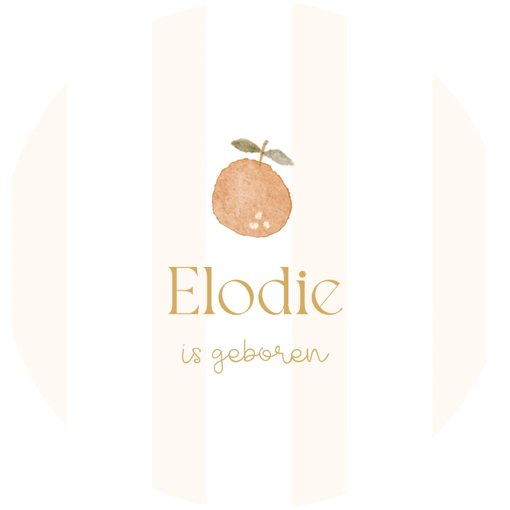 Kondig de geboorte van jullie kindje met een bijpassende raamsticker! Op de sticker staat de illustratie van een sinaasappel. De achtergrond van de raamsticker heeft pastelstrepen en maken de sticker helemaal af. Pas de sticker naar wens aan in de online editor.