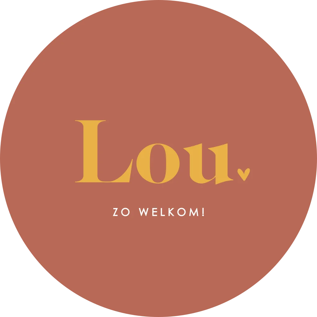 Laat iedereen weten dat jullie kindje is geboren met deze stoere neutrale raamsticker! De naam staat in goudgeel met een hartje ernaast op een beige achtergrond, 'zo welkom' staat in roestbruin.