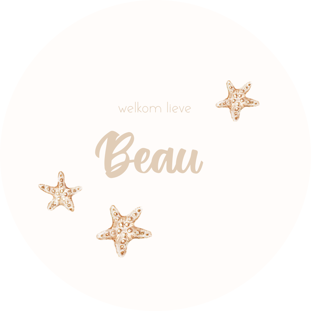 Een stijlvolle ronde raamsticker voor jouw kindje. De sticker heeft een prachtige illustratie van watercolour zeesterren. Pas het ontwerp naar wens aan in onze online editor.