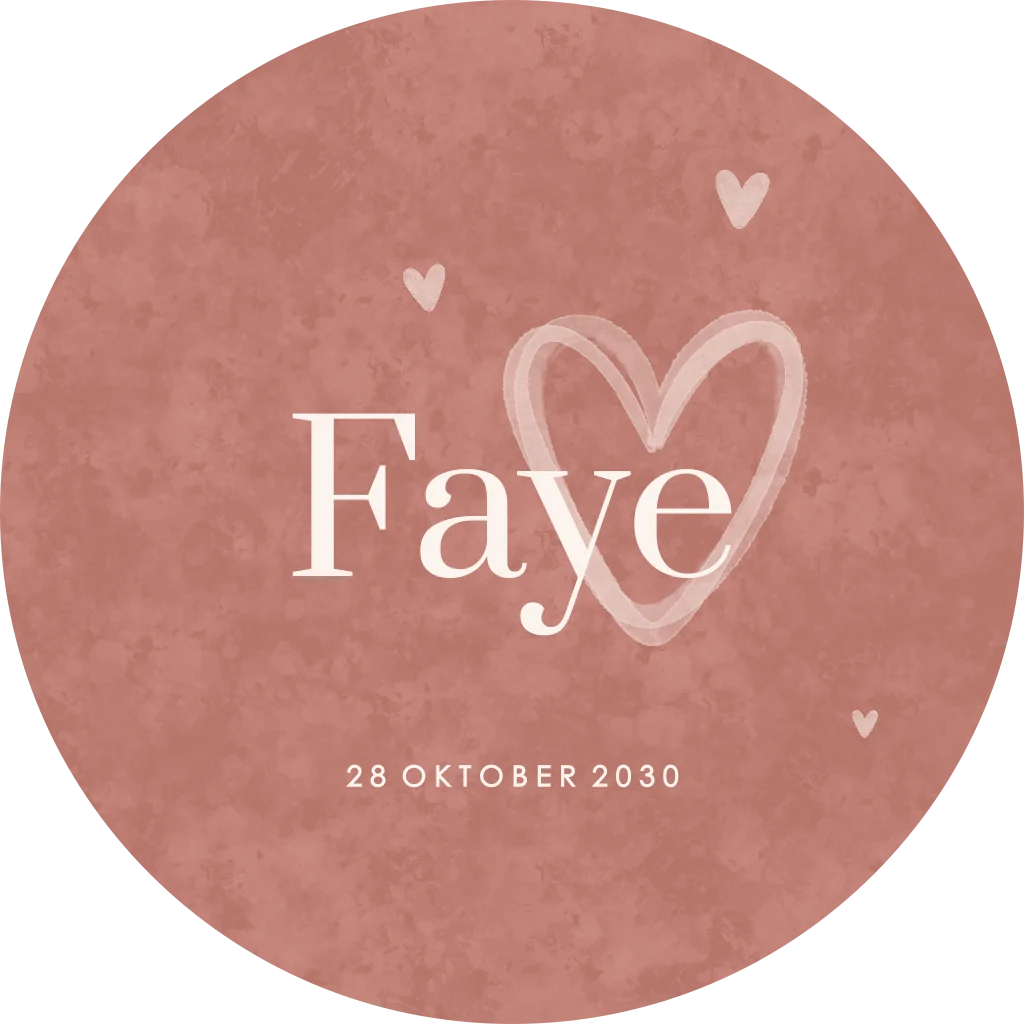 Ronde raamsticker met een stijlvolle roze velvet-look achtergrond en lieve hartjes. De zachte roze tint en het fluweelachtige effect geven de sticker een warme en luxe uitstraling. Perfect om op het raam te plakken en de geboorte van jullie dochter op een feestelijke en stijlvolle manier aan te kondigen.