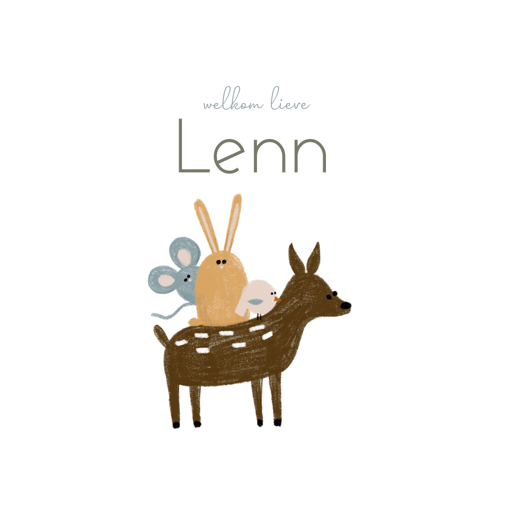 Kondig de geboorte van jullie kindje aan met deze lieve raamsticker in het wit. Een aantal vrolijke getekende diertjes bij elkaar! De tekst is eenvoudig aan te passen in de online editor.