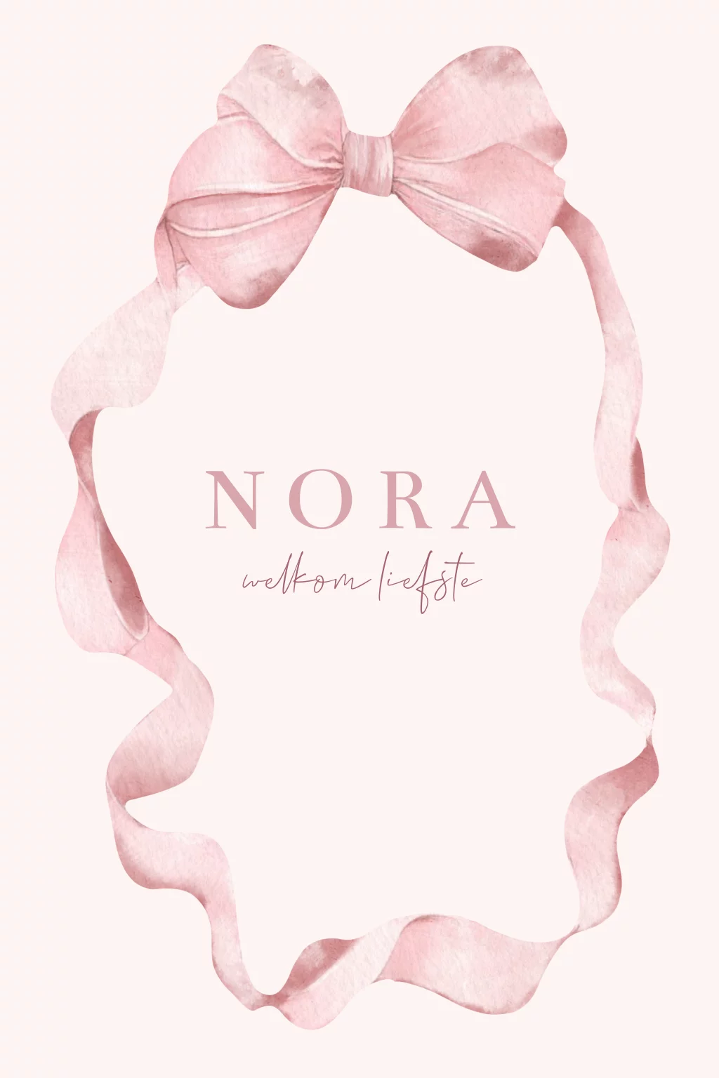 Een lieve raamsticker passend bij het geboortekaartje. De sticker heeft een lichtroze achtergrond met daarop een lieve illustratie van een strik. Pas het ontwerp naar wens aan in onze online editor.