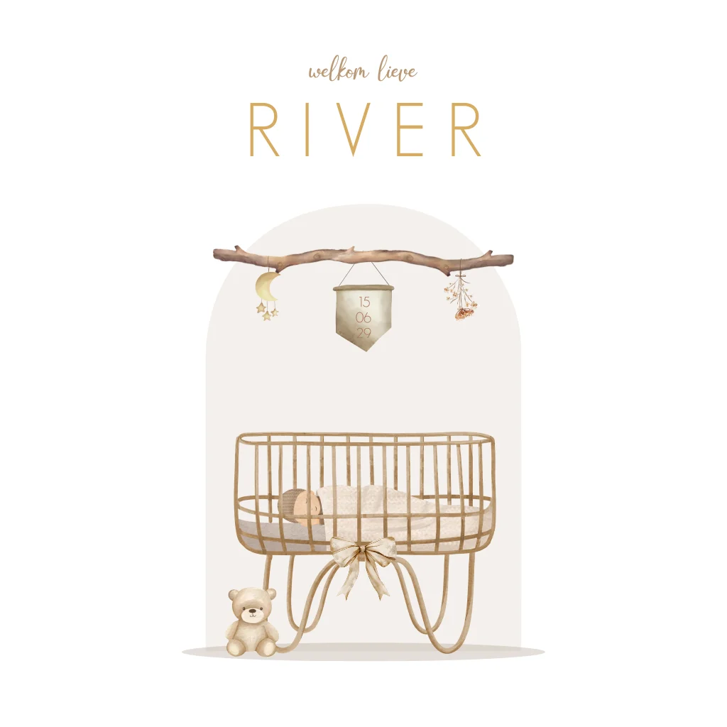 Een schattige raamsticker om de geboorte van jouw kindje aan te kondigen. De sticker heeft een witte basis met daarop prachtige illustraties van een wiegje, takje en speelgoed.