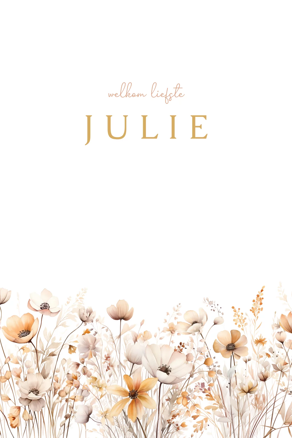 Een romantische raamsticker om de geboorte aan te kondigen. De sticker heeft een witte achtergrond met prachtige bloemen. Pas het ontwerp naar wens zelf aan.
