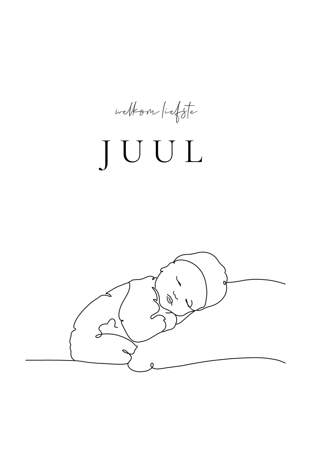 Een stijlvolle raamsticker met een witte achtergrond en lijntekening van een baby. Pas het ontwerp naar wens aan in online editor.