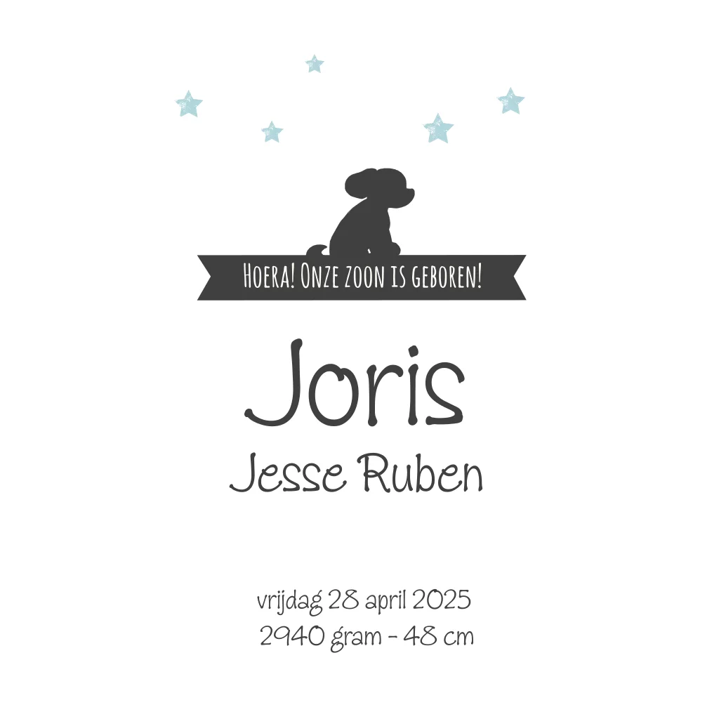 Lief geboortekaartje met silhouet van jongetje en hondje
