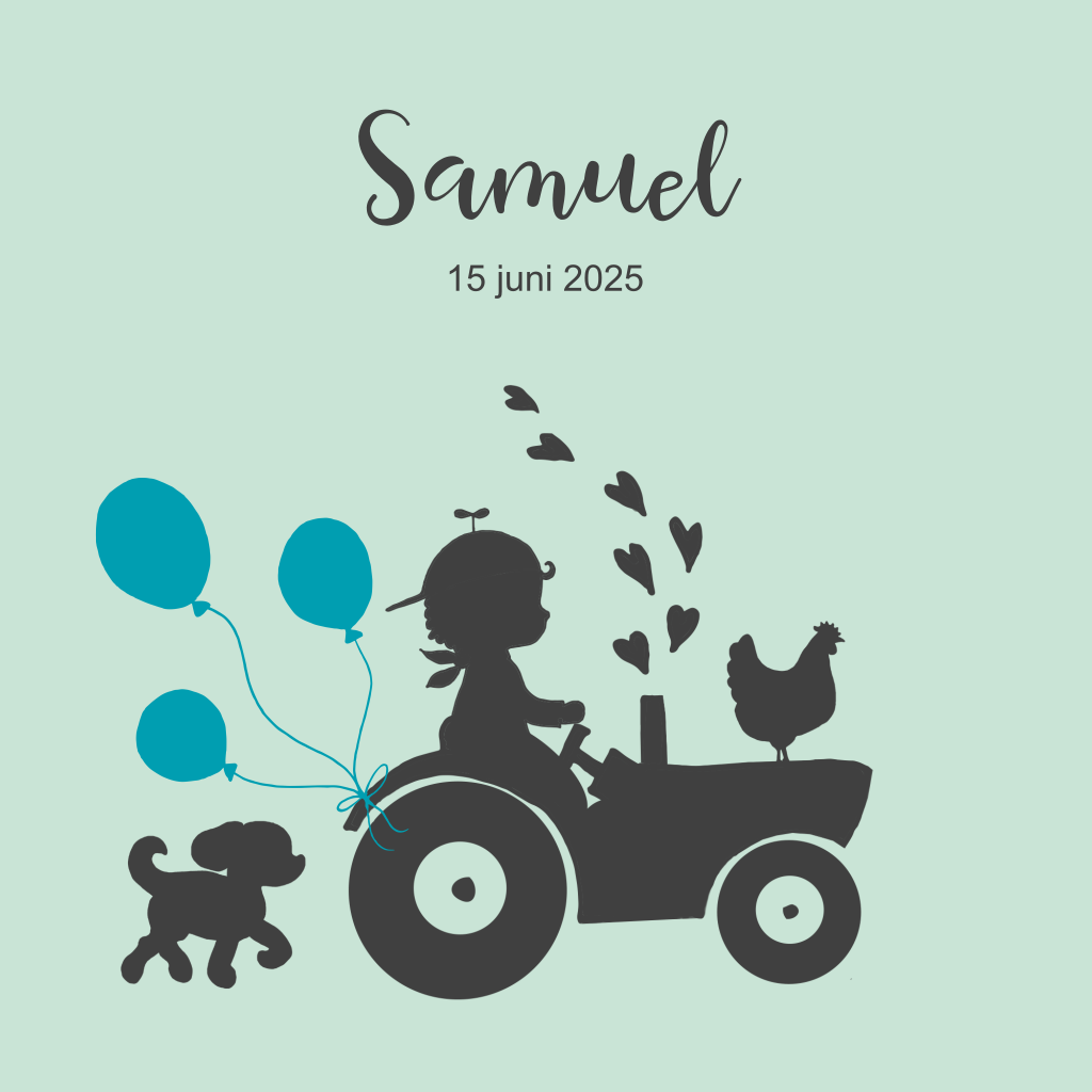Geboortekaartje voor jongen met silhouet van tractor en dieren