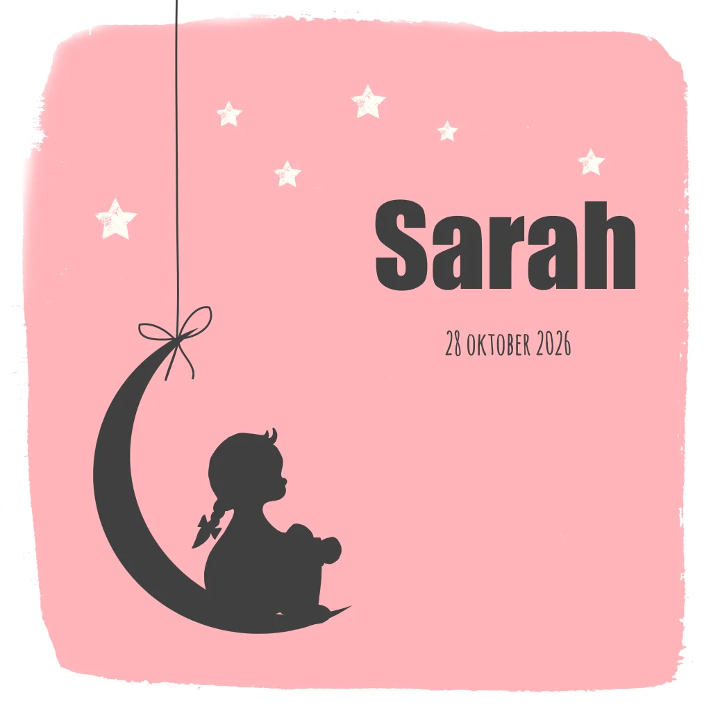 Geboortekaartje silhouet meisje op maan
