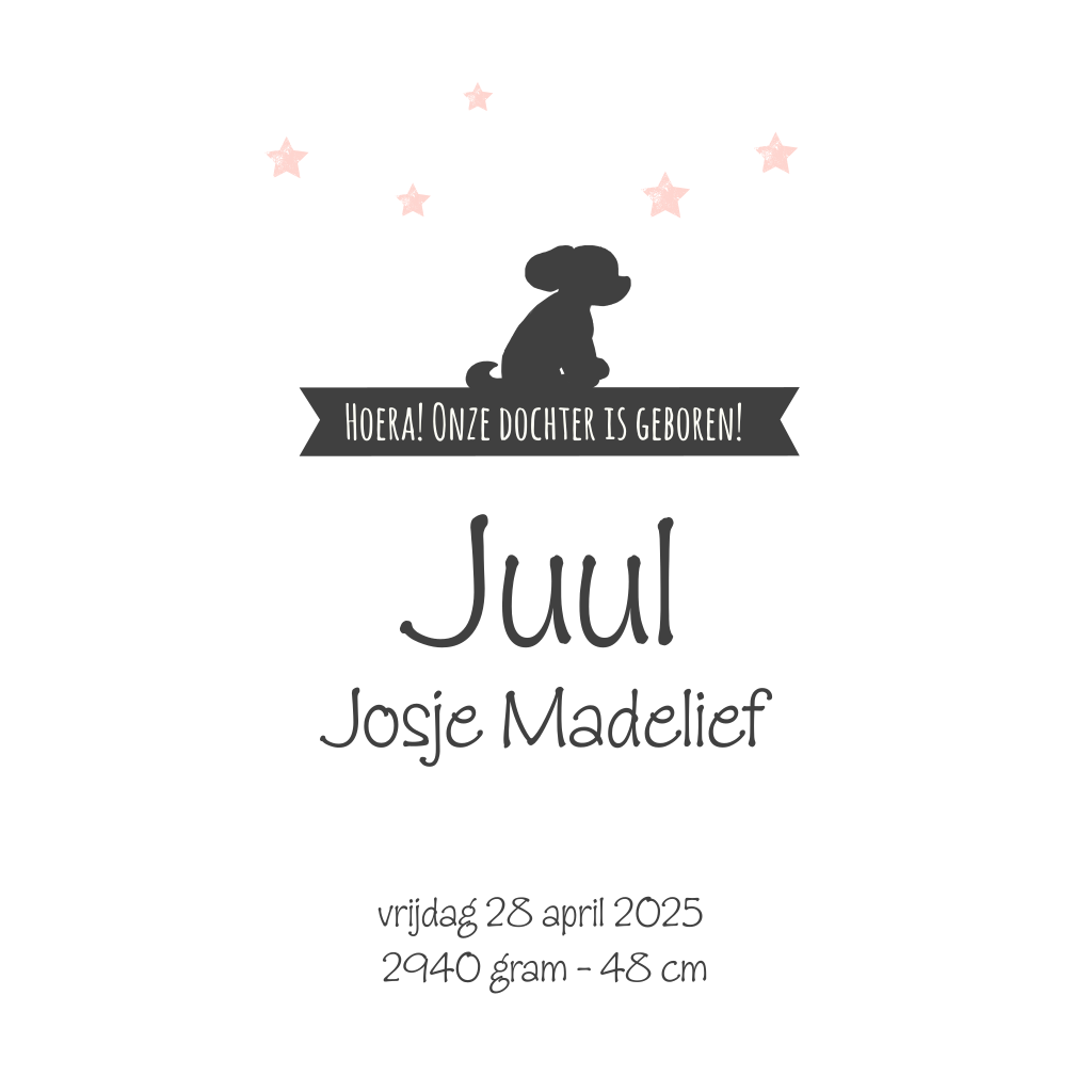 Wist je dat je dit geboortekaartje ook door ons kan laten versturen? Wij zorgen voor de adresstickers en geboortezegels.