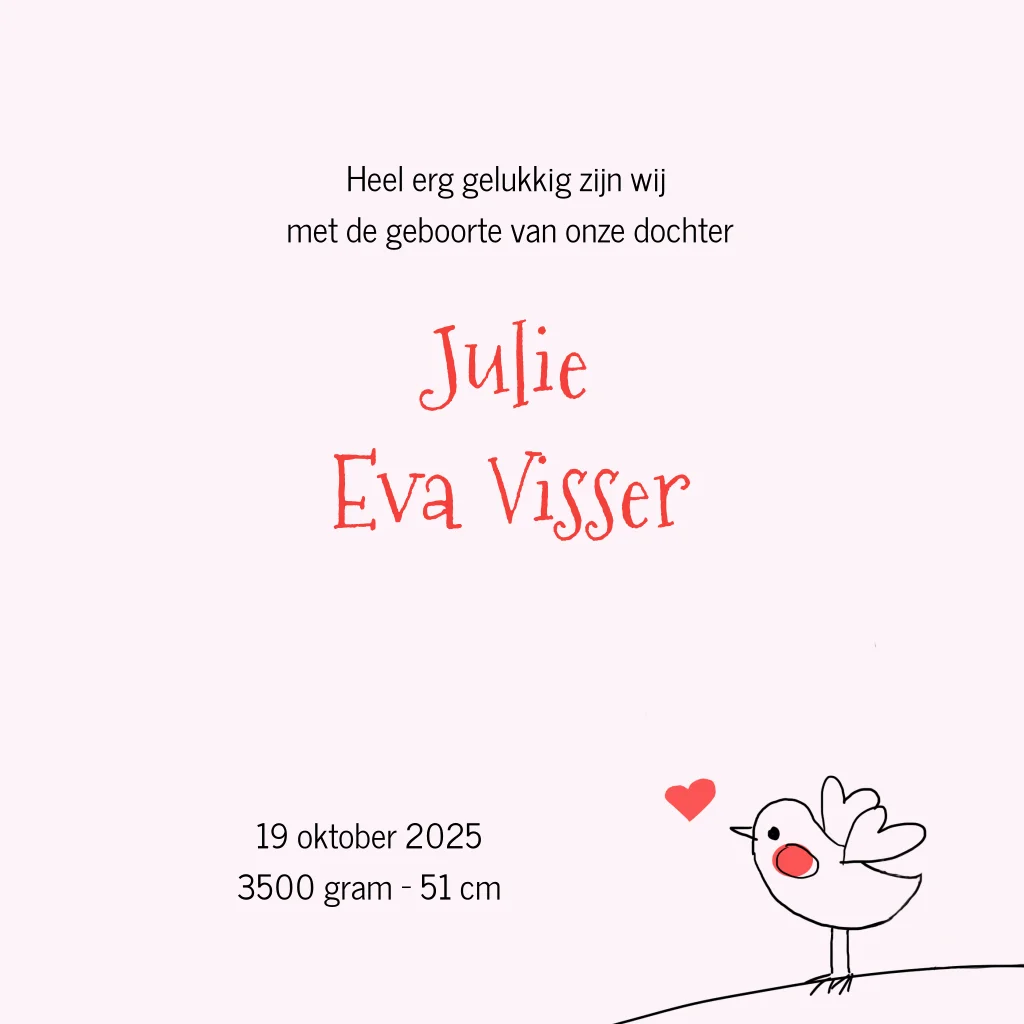 Pas de achtergrond van deze kaart zelf aan naar eigen smaak. Zo maak je er helemaal je eigen kaartje van. Wil je een bijpassend kraamborrelkaartje? Let op, bewerk de kaartjes niet tegelijk!