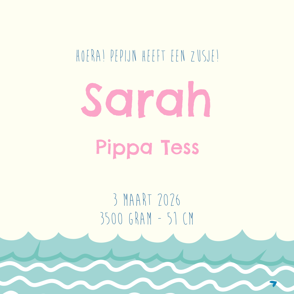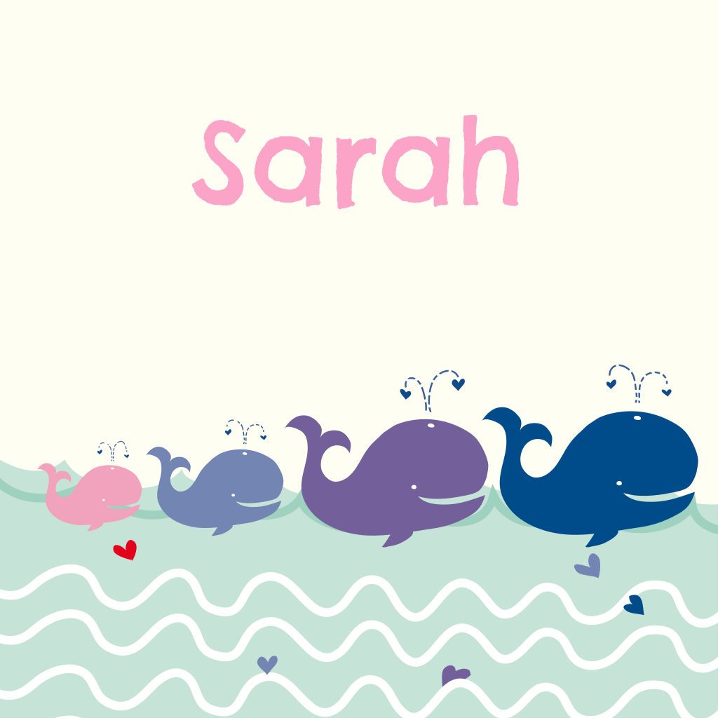 Wat ziet dat er lief uit! Kondig de geboorte van een zusje aan met dit vrolijke geboortekaartje met een walvissengezinnetje.