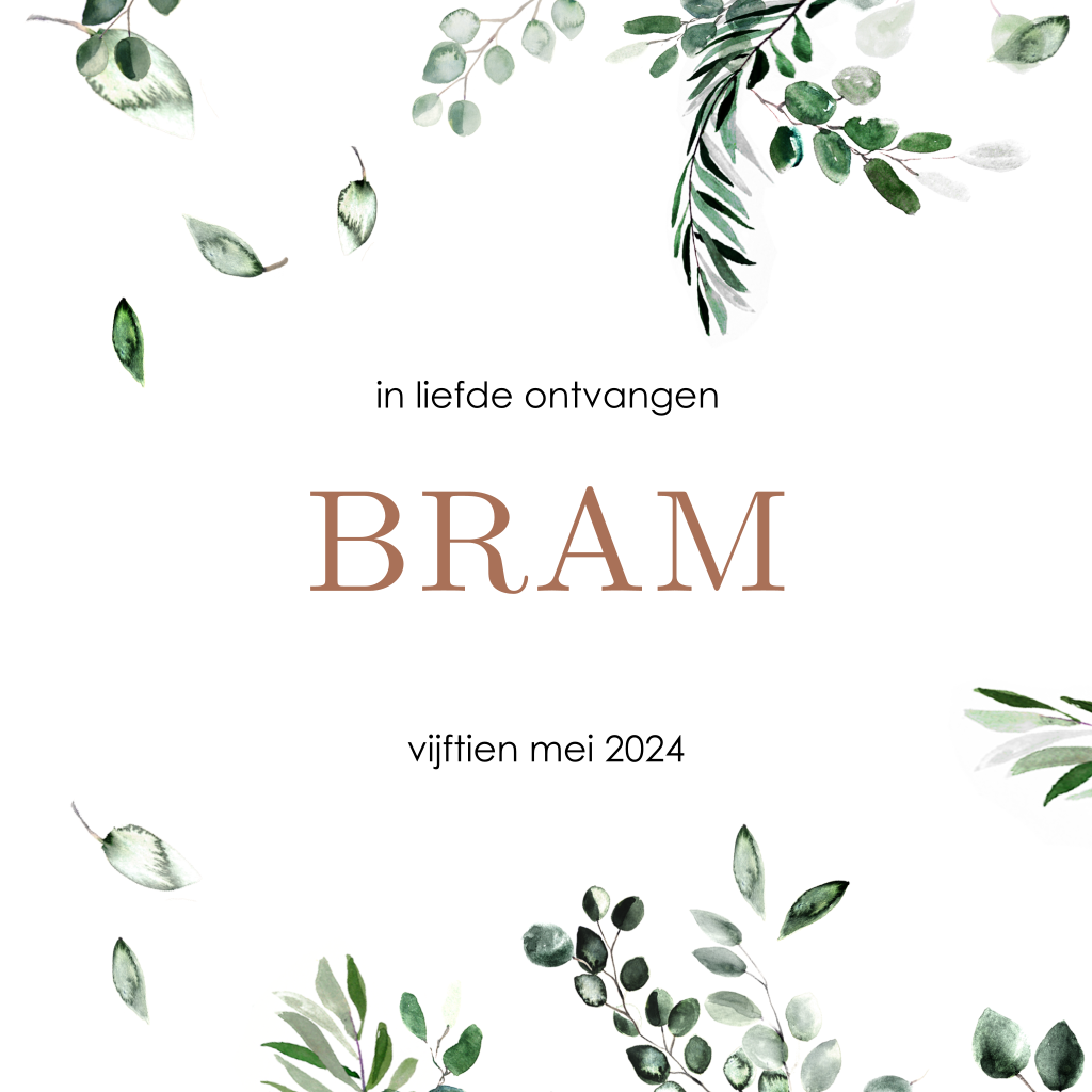 Hip botanisch geboortekaartje voor jongen met waterverf takjes