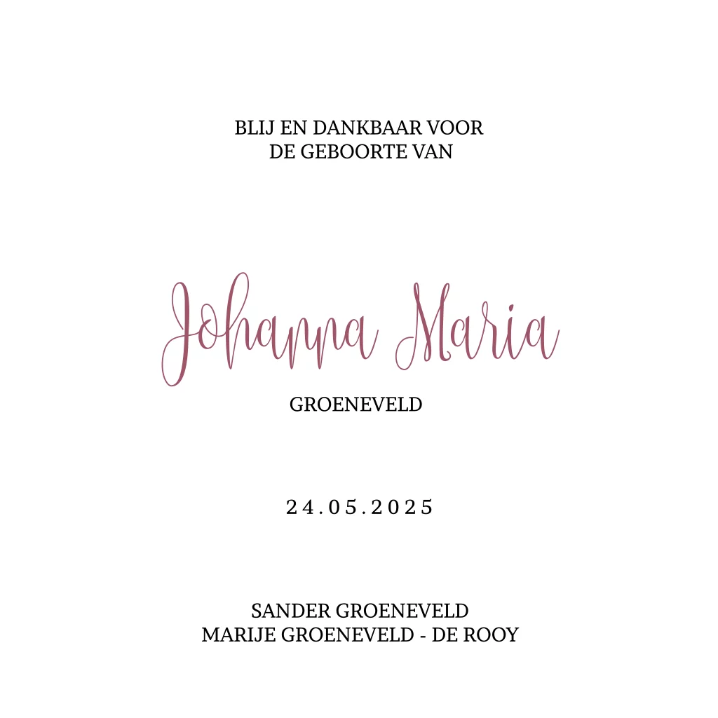 Mooi chique geboortekaartje voor je dochter met op de achtergrond een kader van bloemen uit een bekende schilderij van een Hollandse Meester.