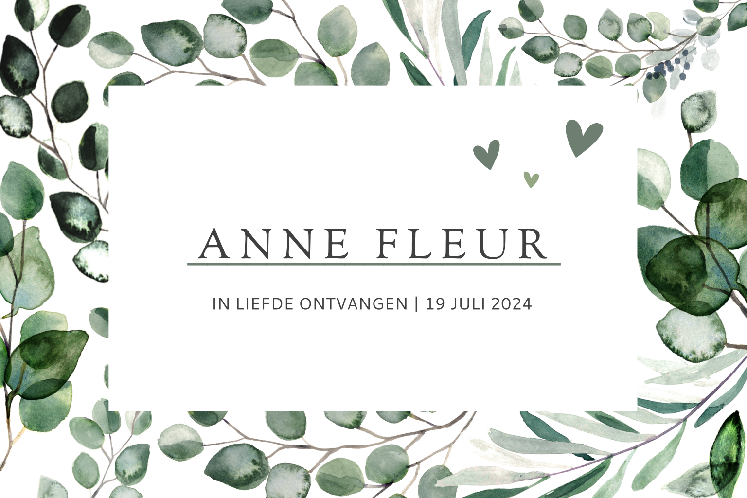 Botanisch geboortekaartje voor de geboorte van je dochtertje met hippe takjes en bladeren van eucalyptus in watercolour.
