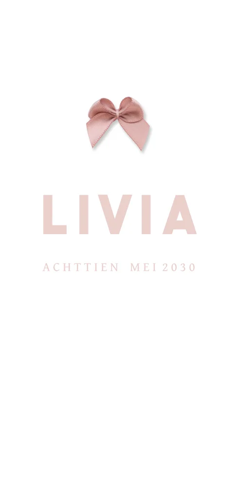 Goed om te weten: De strikjes worden niet standaard meegeleverd, dit kun je gemakkelijk zelf toevoegen tijdens het bestelproces. Je vindt alle bevestigingsmaterialen hier. Wanneer je de geboortekaartjes ontvangt, kun je het kaartje zelf verrijken met het gekozen strikje.