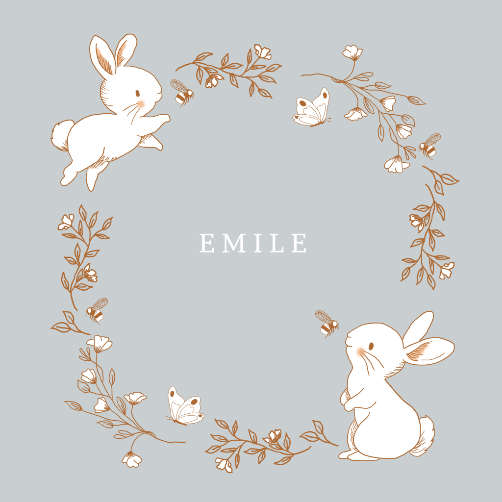 Botanisch geboortekaartje jongen met konijnen en takjes