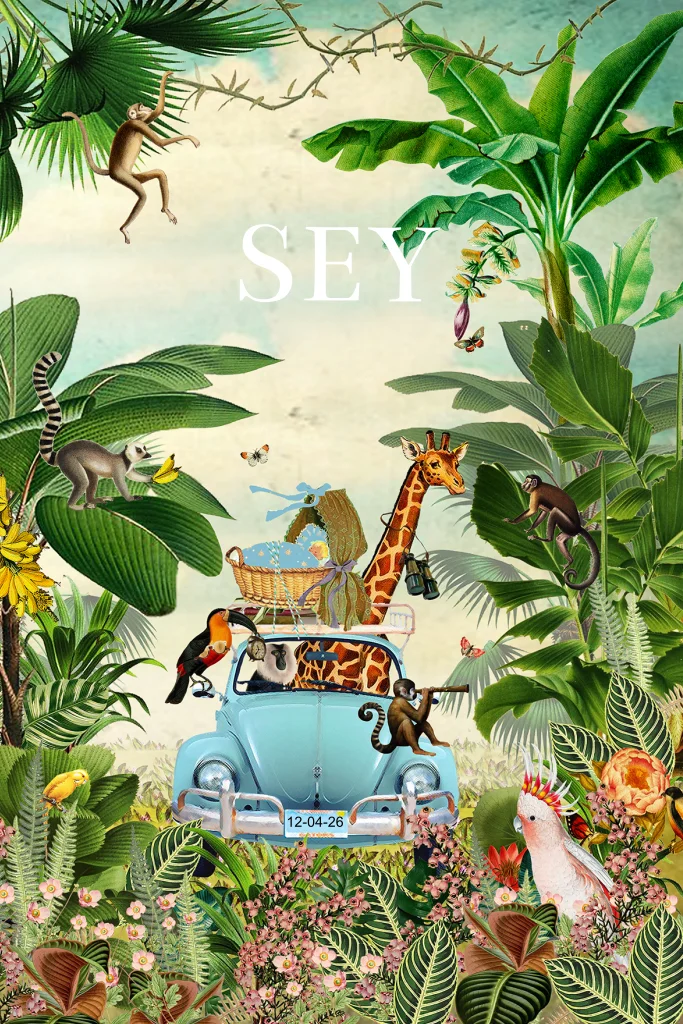 Stoer geboortekaartje om de geboorte van jullie zoontje mee aan te kondigen. Het kaartje staat vol met jungledieren en in het midden een volkswagen auto. Het kaartje heeft een stoere en avontuurlijke uitstraling. Pas de naam van jullie kleintje gemakkelijk aan in onze online editor.