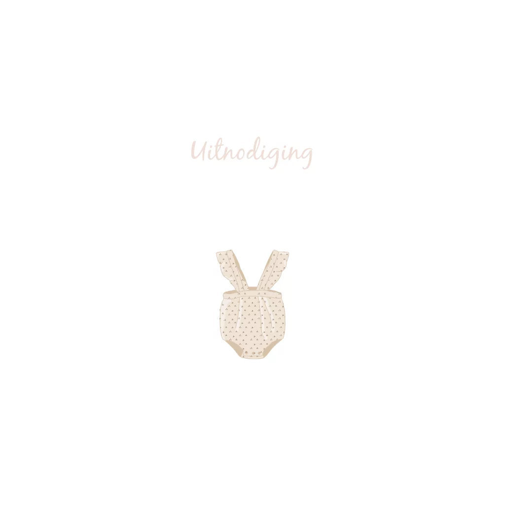 Maak het geboortekaartje compleet met een babyborrel uitnodiging. Het babykaartje heeft een witte achtergrond met daarop een schattige illustratie van een babypakje. Het kaartje is bijpassend bij het geboortekaartje. Pas het kaartje naar wens aan in onze online editor.