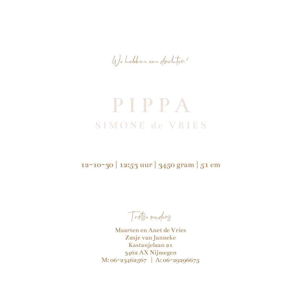 Een lief geboortekaartje voor een meisje. Het kaartje heeft een roze basis met dromerige wolkjes. In het midden van het kaartje zie je een illustratie van een ooievaar met baby. Het ontwerp is naar wens aan te passen in onze online editor.