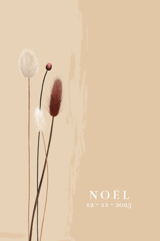 Trendy geboortekaartje voor je pasgeboren dochtertje met stijlvolle gedroogde bloemetjes op een achtergrond met een natuurlijke tint.