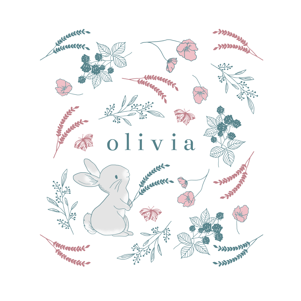 Kondig de geboorte van jullie dochtertje aan met dit lieve kaartje. Op het kaartje staat de tekening van een konijn met daar omheen bloemetjes en takjes in roze- en blauwtinten. Bestel snel een proefdruk om dit kaartje in het echt te zien!