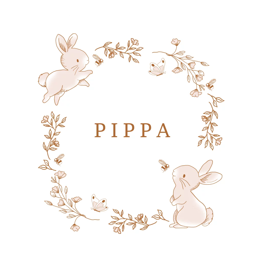 Maak het versturen van de geboortekaartjes extra persoonlijk met deze lieve sluitsticker. De sluitsticker heeft een witte achtergrond met de tekening van een bloemenkrans, twee konijnen en vlinders. Centraal op de sluitsticker staat de naam van jullie kleintje.