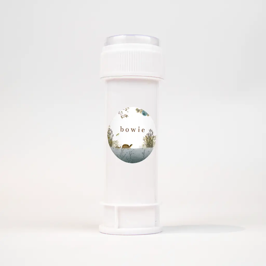 Maak je doopsuiker extra persoonlijk met deze naamsticker! Op de sticker staan de illustraties van twee zwemmende schildpadden. De planten en bloemen maken deze sticker helemaal af.