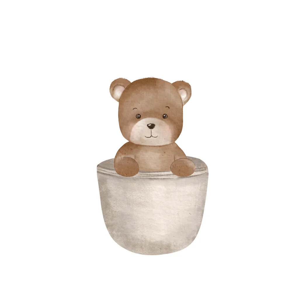 Een schattige sluitsticker van een beertje in een mandje van een luchtballon. De sticker past bij het geboortekaartje van designer Studio Poppybird.