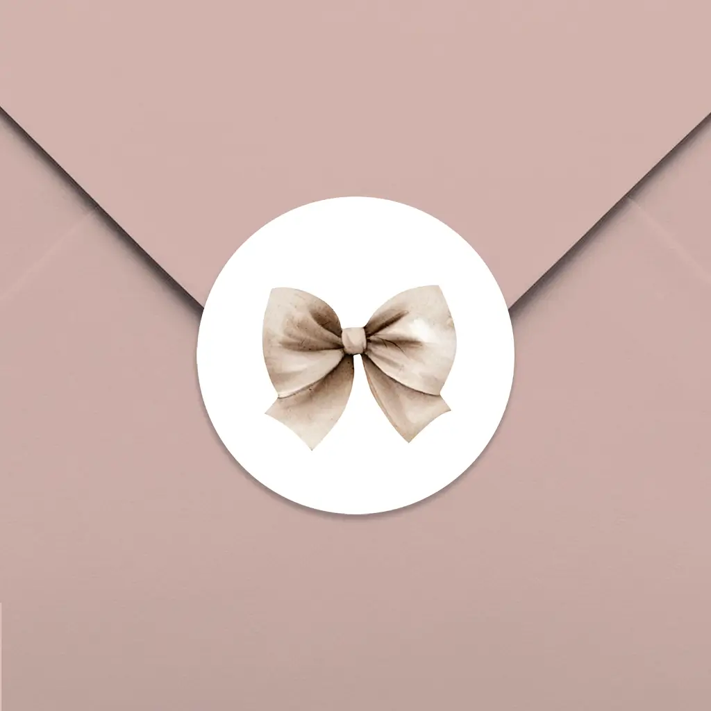 Een stijlvolle sluitsticker voor op de envelop. Het ontwerp heeft een witte achtergrond en een bruine illustratie van een strik. Pas het ontwerp naar wens aan in onze online editor.