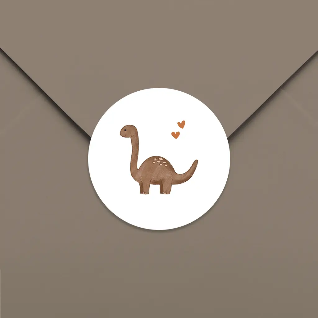 Sluitsticker met illustratie dino en hartjes - per 25 stuks